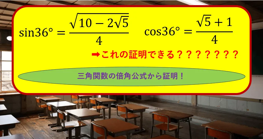 三角関数では30°、45°、60° といった有名角の値はよく知られています。 さらに少し進むと18° や 36° といった準有名角の値も求めることができます。 では、次の疑問が浮かびませんか?「sin ...