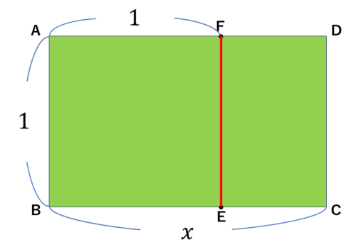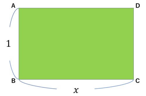 以下のような、縦の長さが \(1\)、横の長さが \(x\) の長方形を考えて見ましょう。