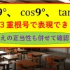 倍角・三倍角の公式から丁寧に導出【18°】は準有名角と呼ばれています。 これらの角度は「有名角」ではありませんが、倍角公式や三倍角公式を利用することで、根号を含む形で正確に求めることができます。 本記事では三角関数の公式を利用しなが ...